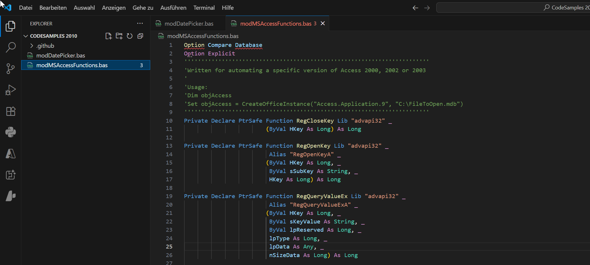Das Besondere: Änderungen, die in VS Code vorgenommen werden, lassen sich anschließend mit einem Klick wieder zurück in den VBA-Editor importieren. Damit wird ein nahtloser Workflow zwischen klassischer VBA-Umgebung und moderner Entwicklungsumgebung möglich – ganz ohne umständliche Zwischenlösungen.
